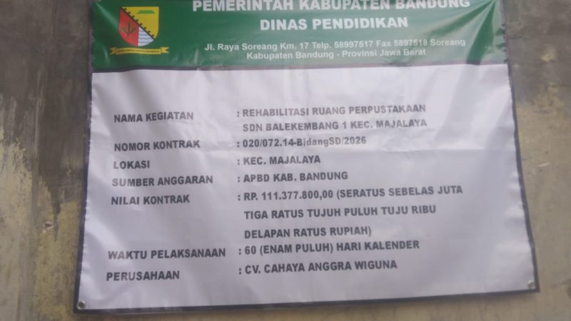 Bandung, REVOLUSI.co.id– Dalam pembangunan rehabilitasi gedung perpustakaan di tingkat sekolah dasar yang ada di Kabupaten Bandung, sungguh memprihatinkan, bahkan besar dugaan tidak ada perhitungan yang memadai dari Dinas Pendidikan Kab. Bandung.